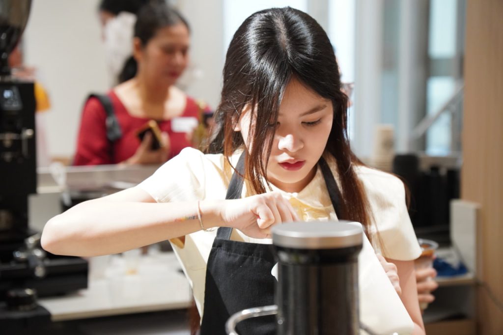 Tại UniBean Café, sinh viên được trải nghiệm quy trình làm việc thực tế của một barista: từ pha chế, tính toán chi phí đến quản lý quầy. Các bạn rèn luyện tinh thần trách nhiệm, kỹ năng làm việc nhóm và tư duy kinh doanh thực tiễn